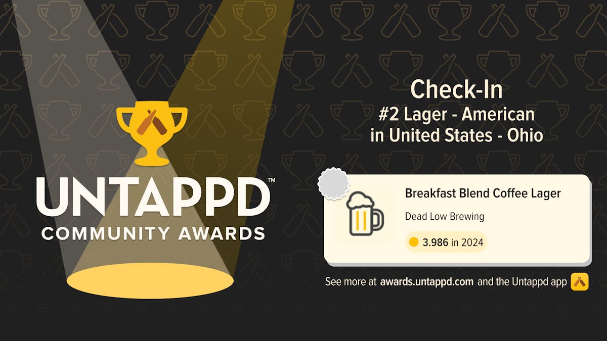 Our Breakfast Blend Coffee Lager, rated #2 Lager in Ohio on Untappd, is on tap now. Come grab a pint and taste the buzz!